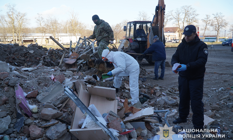 “У цьому випадку ми тут шукаємо рештки тіл загиблих і, можливо, їх особисті речі, які б могли тут перебувати в завалах. Вона шукає речі, які, можливо, були просяклі тілесними рідинами”, – розповідає Володимир Антонюк – інспектор-кінолог кінологічного центру ГУНП в Тернопільській області.