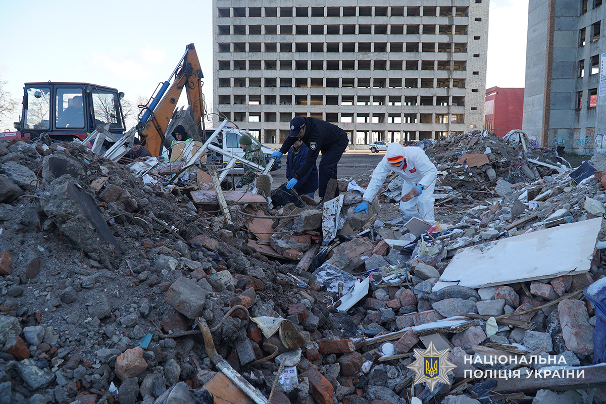 На майданчик за межами міста, куди звезли сотні тонн уламків із вулиць Стуса та 15 Квітня, щодня заїжджають слідчі групи. Вони розгортають кожен шар зруйнованих конструкцій, відпрацьовують ділянки вручну у пошуках того, що може допомогти встановити долю зниклих безвісти.