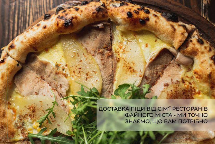 Сім’я ресторанів Файного Міста рекомендує здійснити замовлення піци, у якої кожен наступний інгредієнт ідеально доповнює попередній. Ви будете в захваті від цієї страви, тому захочете скуштувати все, навіть бортики. Сім’я ресторанів Файного Міста підтримує дружбу, любов і турботу. Вона переконана, що сім’я – це не тільки родинні зв’язки, а й підтримка взаємовідносин з людьми, що вас оточують, люблять, цінують, поважають, знають про ваші смаки й інтереси. Сім’я – це коли ви збираєтесь разом, аби повеселитись, обговорити важливі питання чи порадитись.